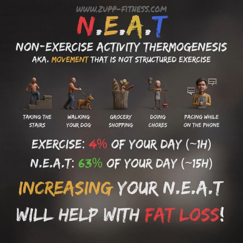 “ZuppFit: 7 Days of NEAT Habits” is a simple, practical movement guide designed to help you take action—without a gym or equipment. NEAT (Non-Exercise Activity Thermogenesis) is all about moving more throughout your day in small, consistent ways that add up to big results.